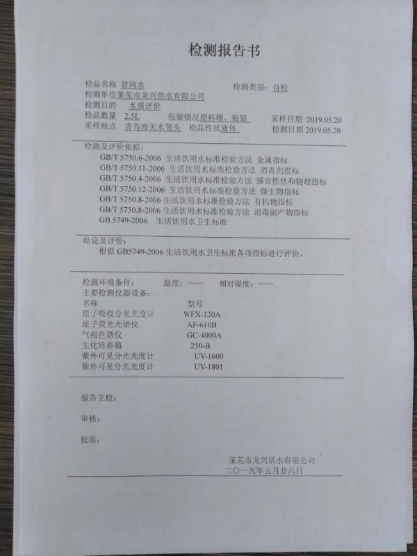 青島海關(guān)管網(wǎng)水龍頭水質(zhì)檢測報告