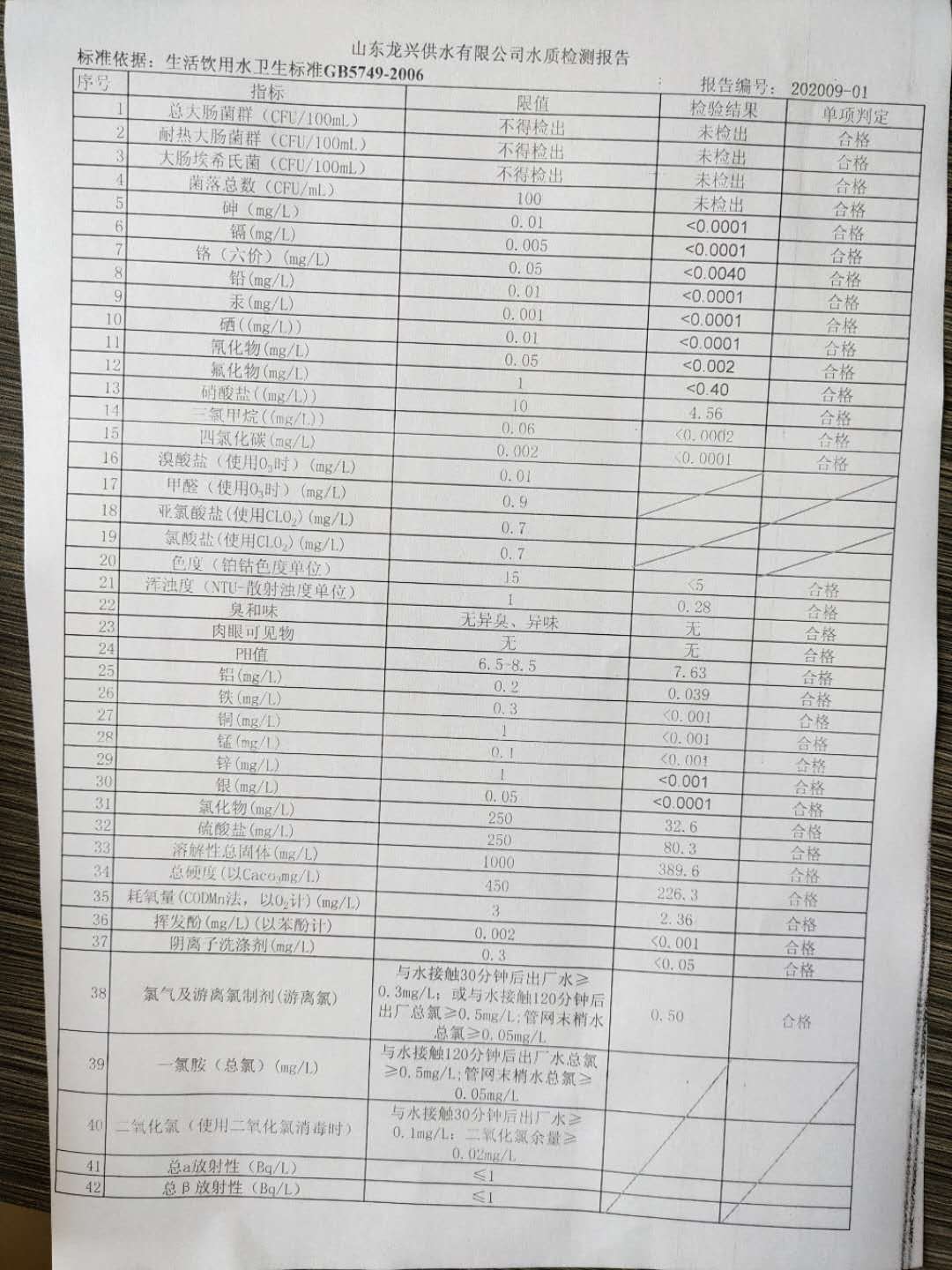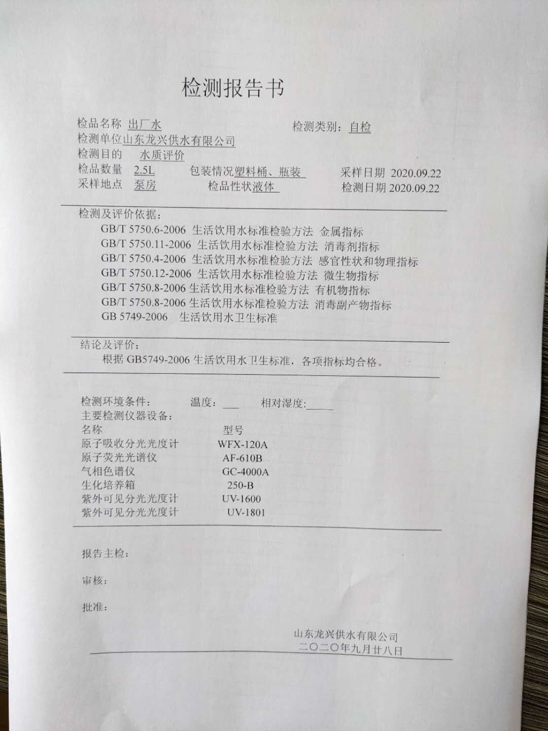 2020年9月出廠水月檢報告